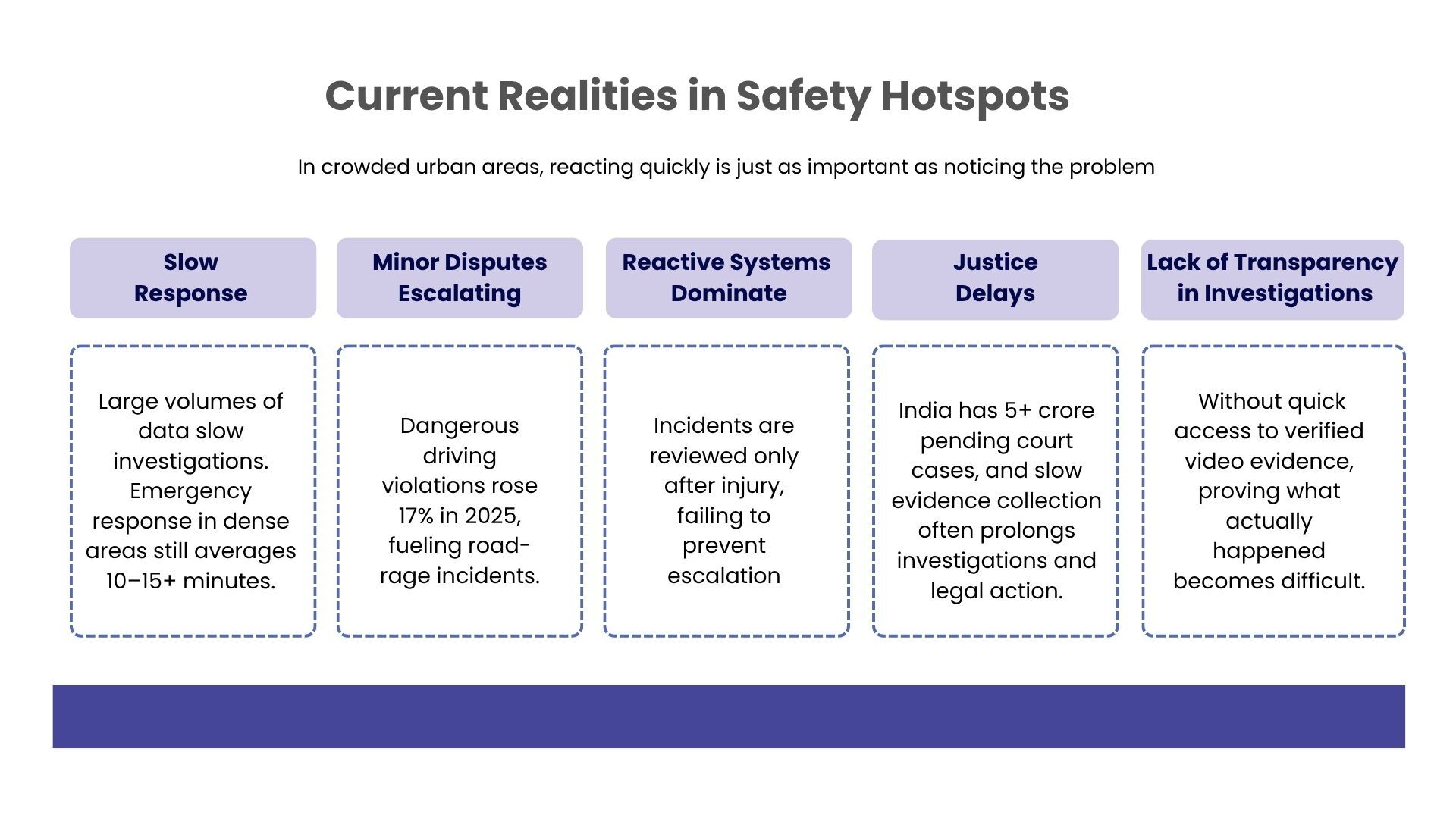This challenge is not limited to criminal investigations alone. Similar delays occur in many everyday incidents across cities, where identifying the right moment quickly can make the difference between prevention and escalation. Across busy streets and intersections, these delays can have even more serious consequences