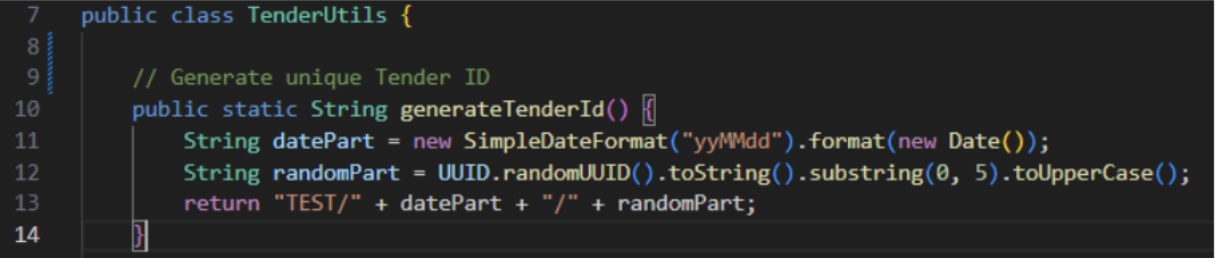 Tender IDs and Ref IDs are generated inside each test iteration, ensuring uniqueness across runs.