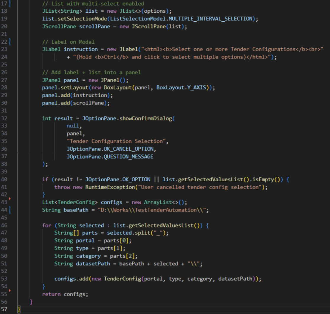 To address this, I built a Java Selenium automation framework that is modular, scalable, and version-controlled via Bitbucket. While the initial use case focused on tender workflows, the framework itself is application-agnostic and can be adapted to streamline any enterprise process with similar challenges.