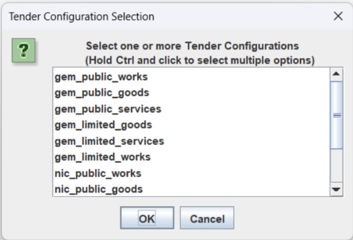 “Select Configurations (Use Ctrl + Click for Multiple Selection)”